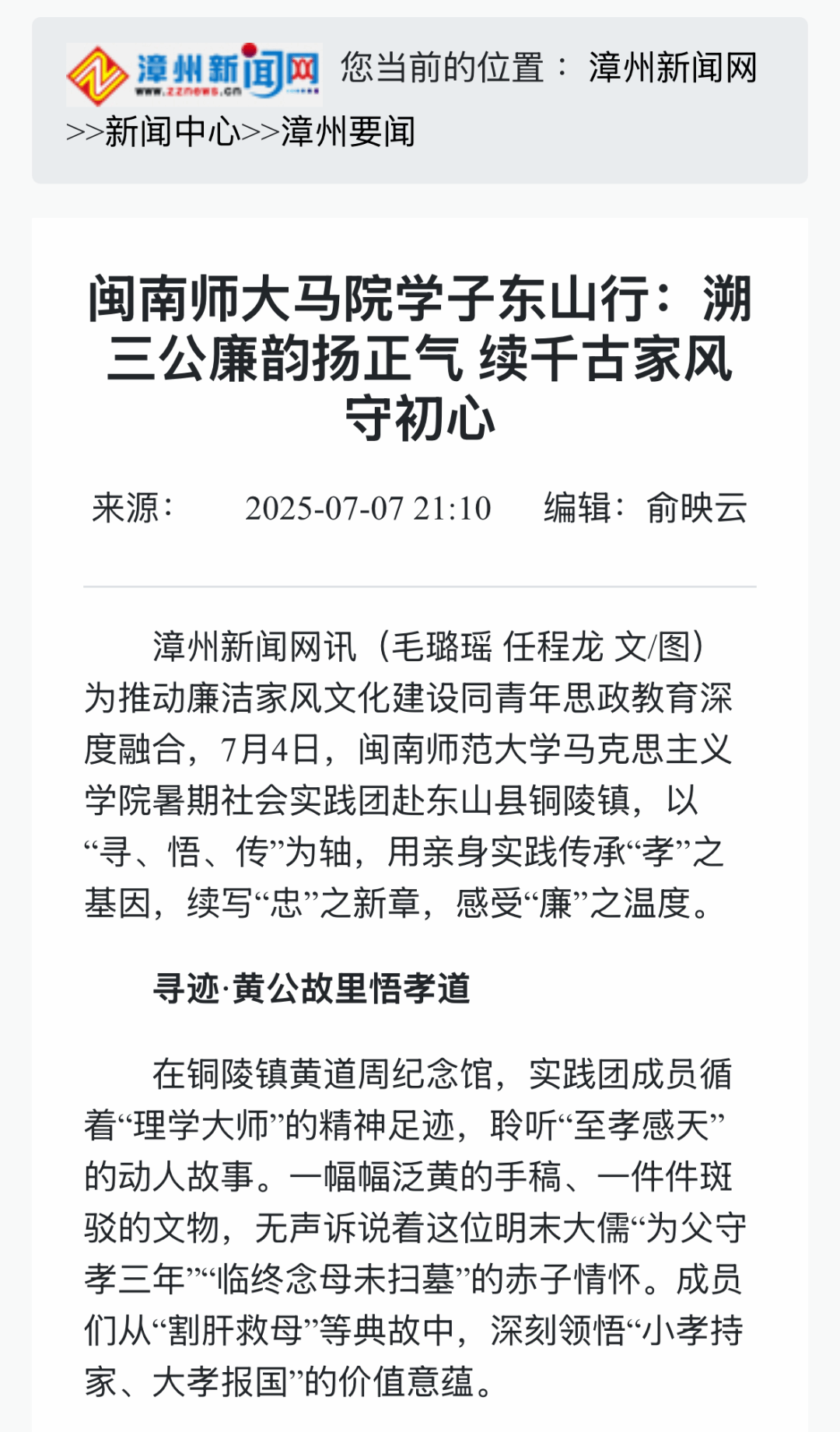 4、漳州新闻网:闽南师大马院学子东山行:溯三公廉韵扬正气 续千古家风守初心
