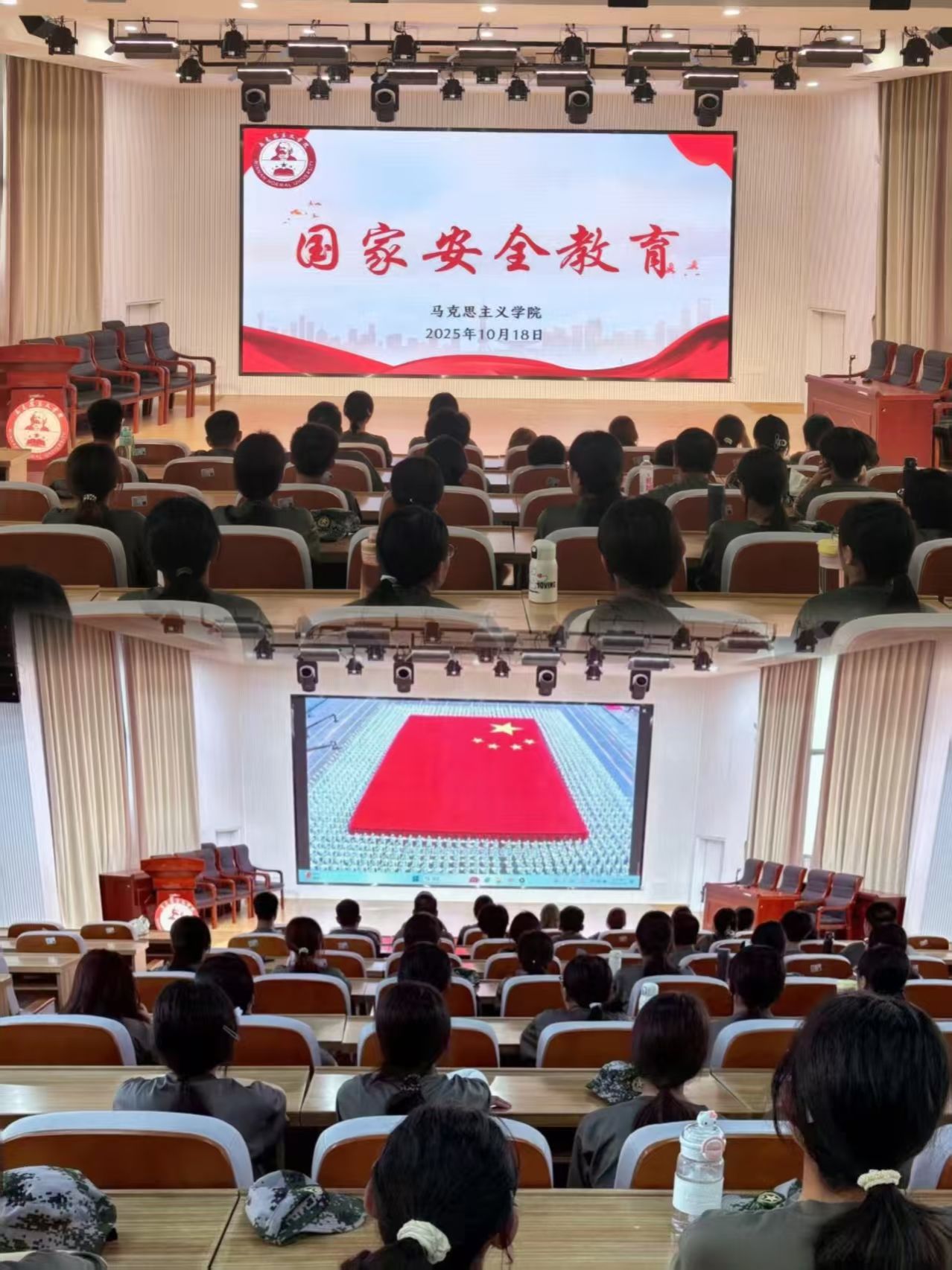 在马院礼堂开展国家安全教育主题班会。2025级本科新生参与。(通讯员 沈书伊)
