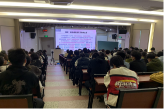林建辉教授在达南306为我校学生做题为《勇攀科技创新高峰》的专题讲座。(通讯员 任程龙)