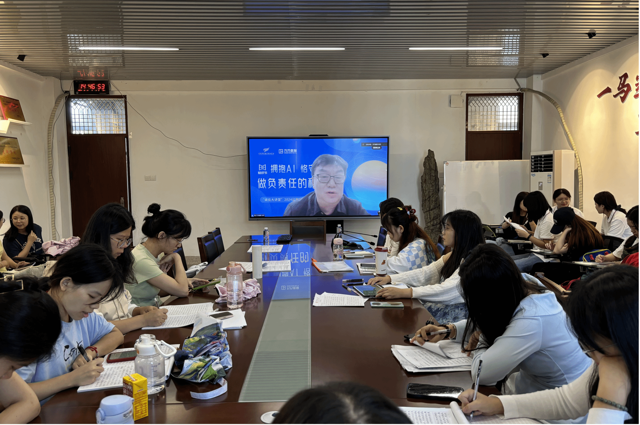 师生于综合楼中区404观看由中国科技情报学会科研诚信建设工作委员会及万方数据联合发起的“开学第一课:科研诚信进校园”线上讲座。(通讯员 蔡可捷)