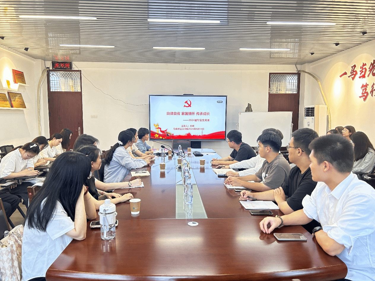 6月14日下午,人兽性交 党委书记方琼综合楼中区404会议室为2024届毕业生党员讲授题为《自律自省 家国情怀 传承成长》的“最后一堂党课”,全体2024届在校毕业生党员参加。(通讯员 吴育曼)