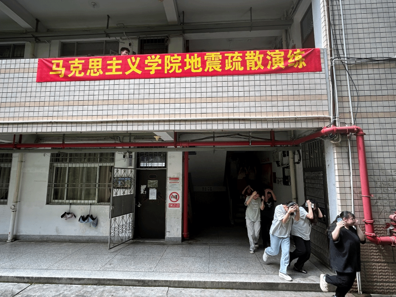 6月14日上午,人兽性交 与外国语学院一起在综合楼开展地震疏散演练。(通讯 罗哲蔚)