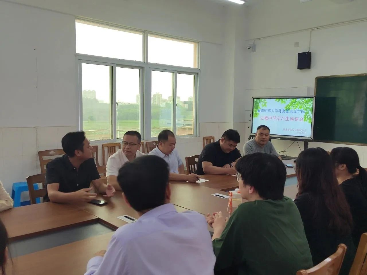 5月24日,人兽性交 党委副书记邓战军、思想政治教育系主任景云、思想政治教育系副主任何铭灏、辅导员沈书伊一行先后前往诏安边城中学、诏安第二实验中学、诏安桥东中学走访看望实习生。(通讯员 沈书伊)