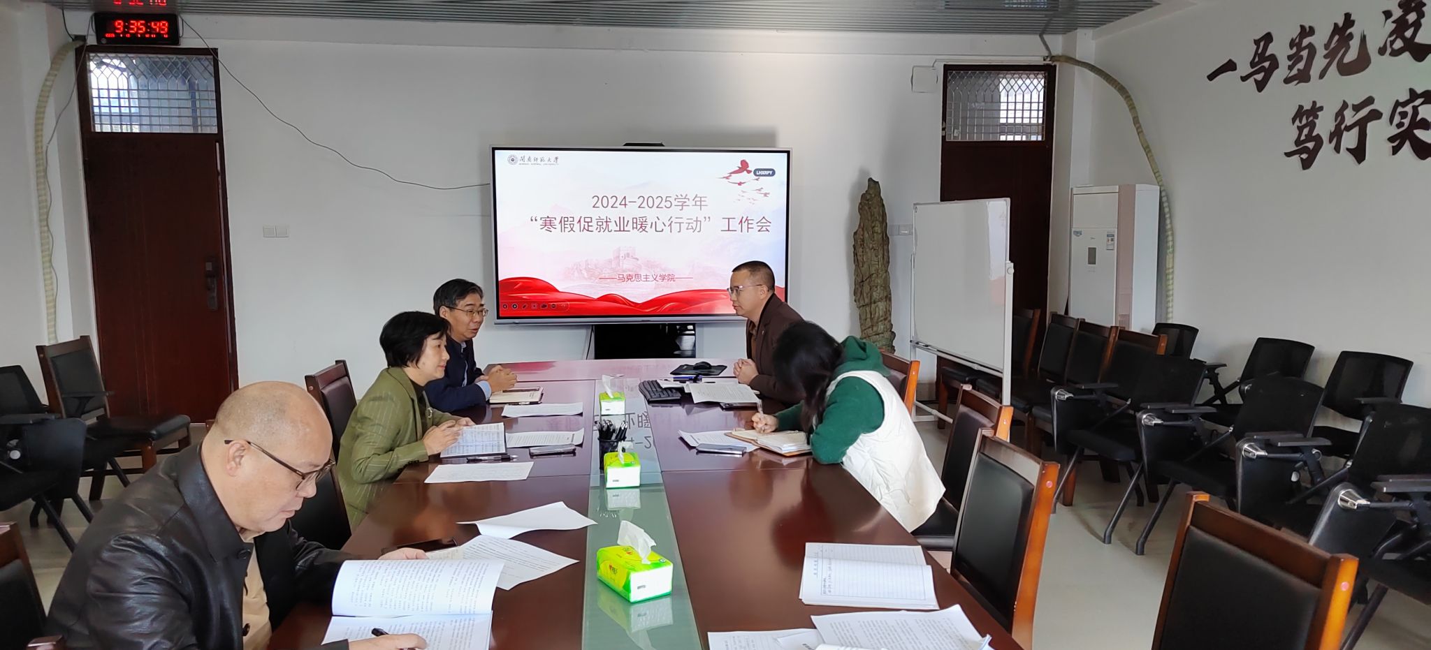 党政领导班子在综合楼中区404召开“寒假促就业暖心行动”工作会,会上分析了严峻的就业形势并要求落实学校就业相关会议或文件精神。(通讯员 徐素芬)