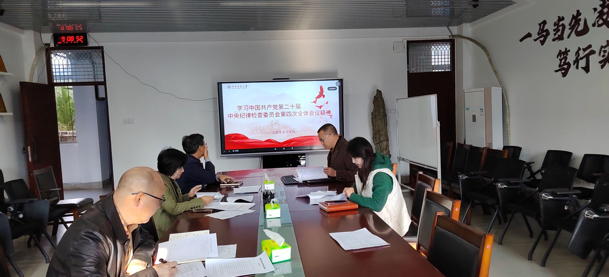 党委理论学习中心组在综合楼中区404组织学习中国共产党第二十届中央纪律检查委员会第四次全体会议精神。(通讯员 徐素芬)