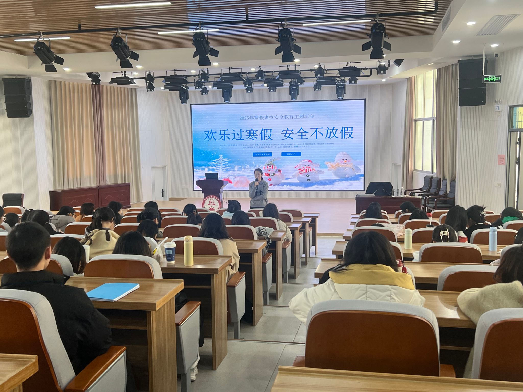 在马院礼堂开展“欢乐过寒假,安全不放假”离校前安全工作会,会议由辅导员沈书伊、任程龙主持,全体本科生参加。(通讯员 沈书伊)