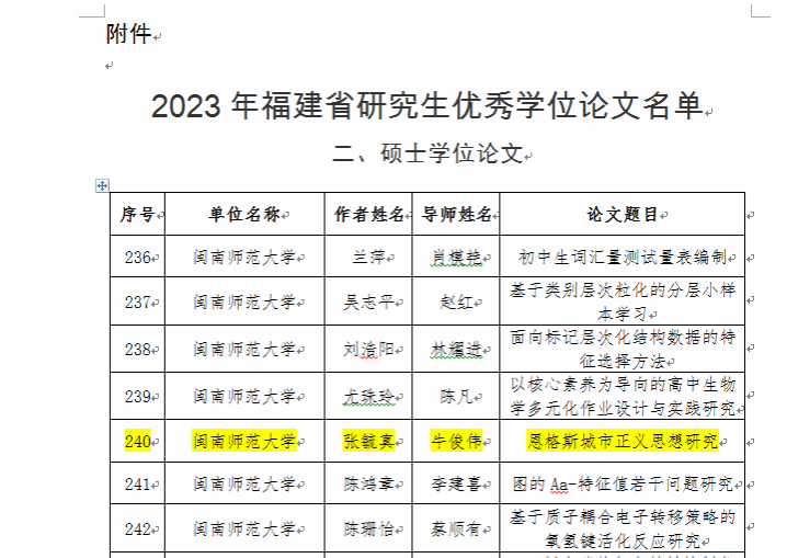 2020级张毓真同学在导师牛俊伟教授指导下,硕士学位论文获评2023年福建省研究生优秀研究生学位论文。(通讯员 张妍)