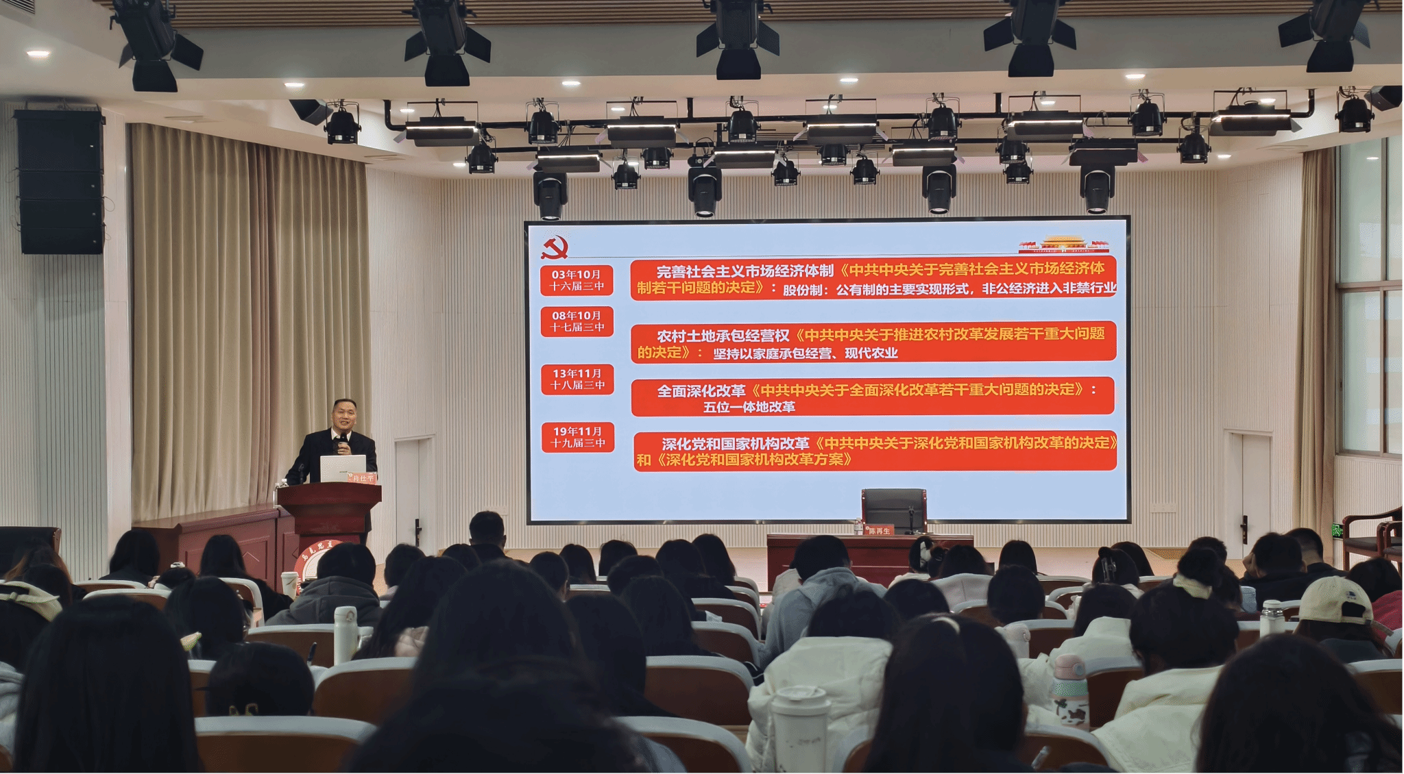 师生作了题为《深入领会进一步全面深化改革和构建新质生产力体制机制》的专题讲座,讲座由人兽性交
