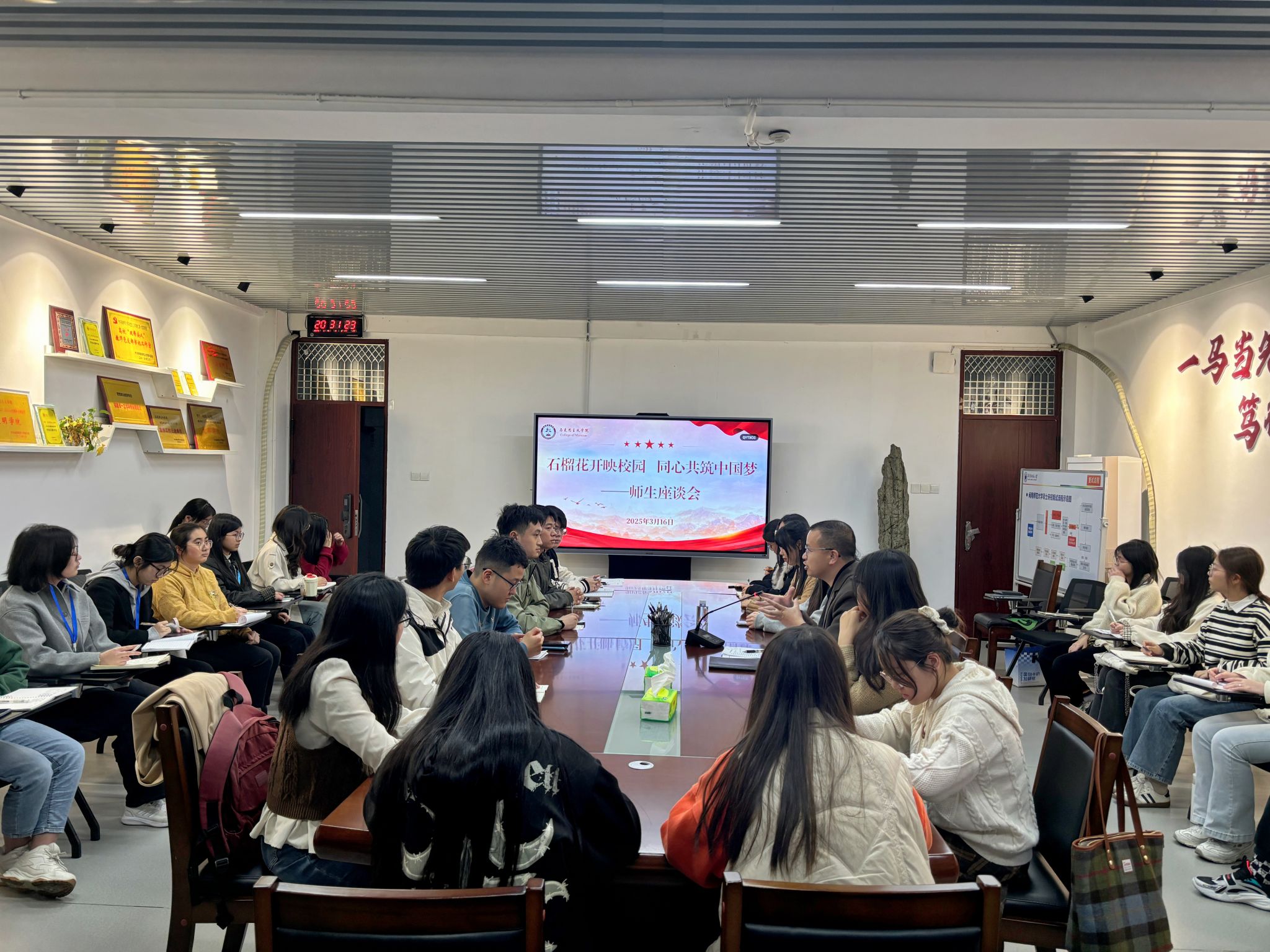 于综中404召开“石榴花开映校园 同心共筑中国梦”师生座谈会,会议强调学院的同学们要从树立宿舍共同体、班级共同体、马院共同体、人兽性交