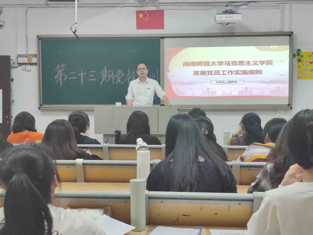 发展党员工作实施细则》为主题,由研究生第二党支部书记潘怀杰老师主讲,全体入党积极分子参加。