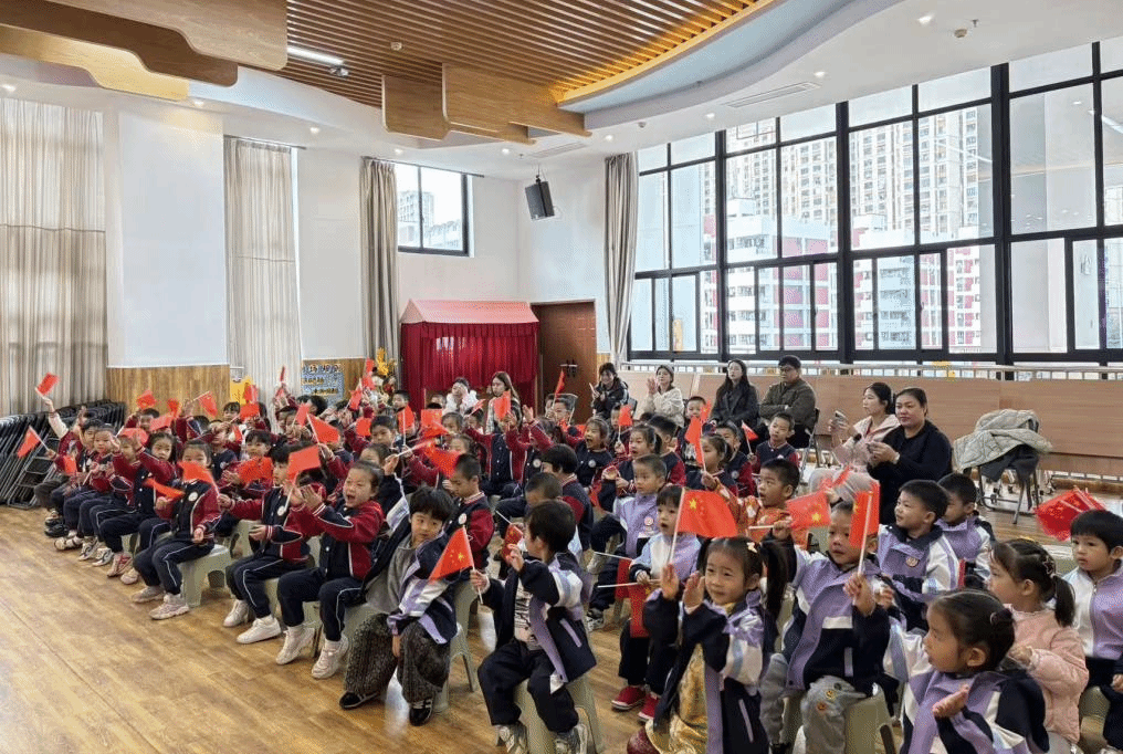 研究生吴婧同学带来经典歌曲《萱草花》,温柔的旋律萦绕耳畔,孩子们手持小国旗轻轻跟唱,脸上洋溢着灿烂的笑容,纯真的情感在悠扬歌声中静静传递,爱国情感在潜移默化中逐渐升华,将活动氛围推向温馨高潮。