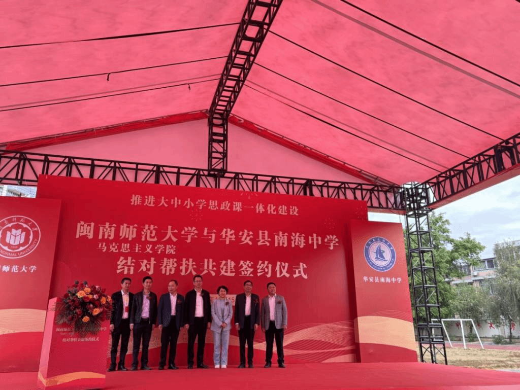 党委书记方琼、院长陈再生、系主任景云和学院研究生代表赴华安,与南海中学举行结对帮扶共建签约仪式,中共华安县委常委、宣传部部长蔡森成,县教育局党委书记、局长汤奇才,华安县教育局和仙都镇、南海中学师生代表参加了签约仪式。